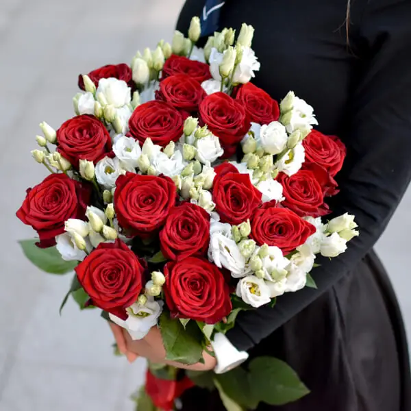 Букет "Белые Эустомы и Красные Розы" — купить по цене от 9360 руб. с доставкой в Нижнем Новгороде