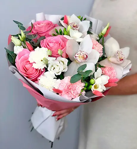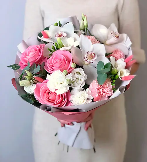 Соберем в день доставки, только из свежих цветов и затем с улыбкой вручим получателю.