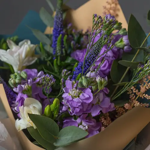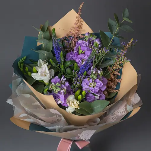 Соберем в день доставки, только из свежих цветов и затем с улыбкой вручим получателю.