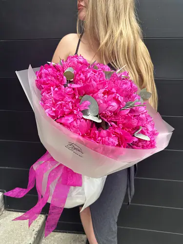 Букет из 15 малиновых пионов