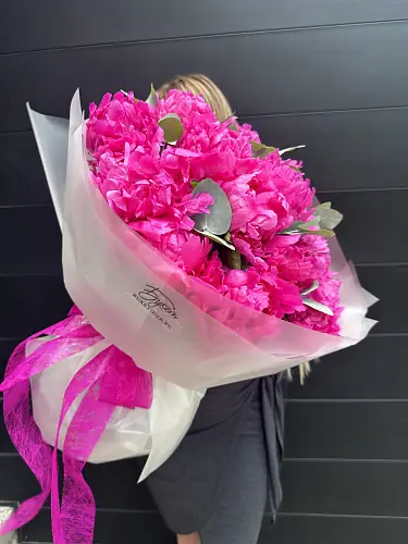 Букет из 15 малиновых пионов — купить по цене от 8600 руб. с доставкой в Нижнем Новгороде