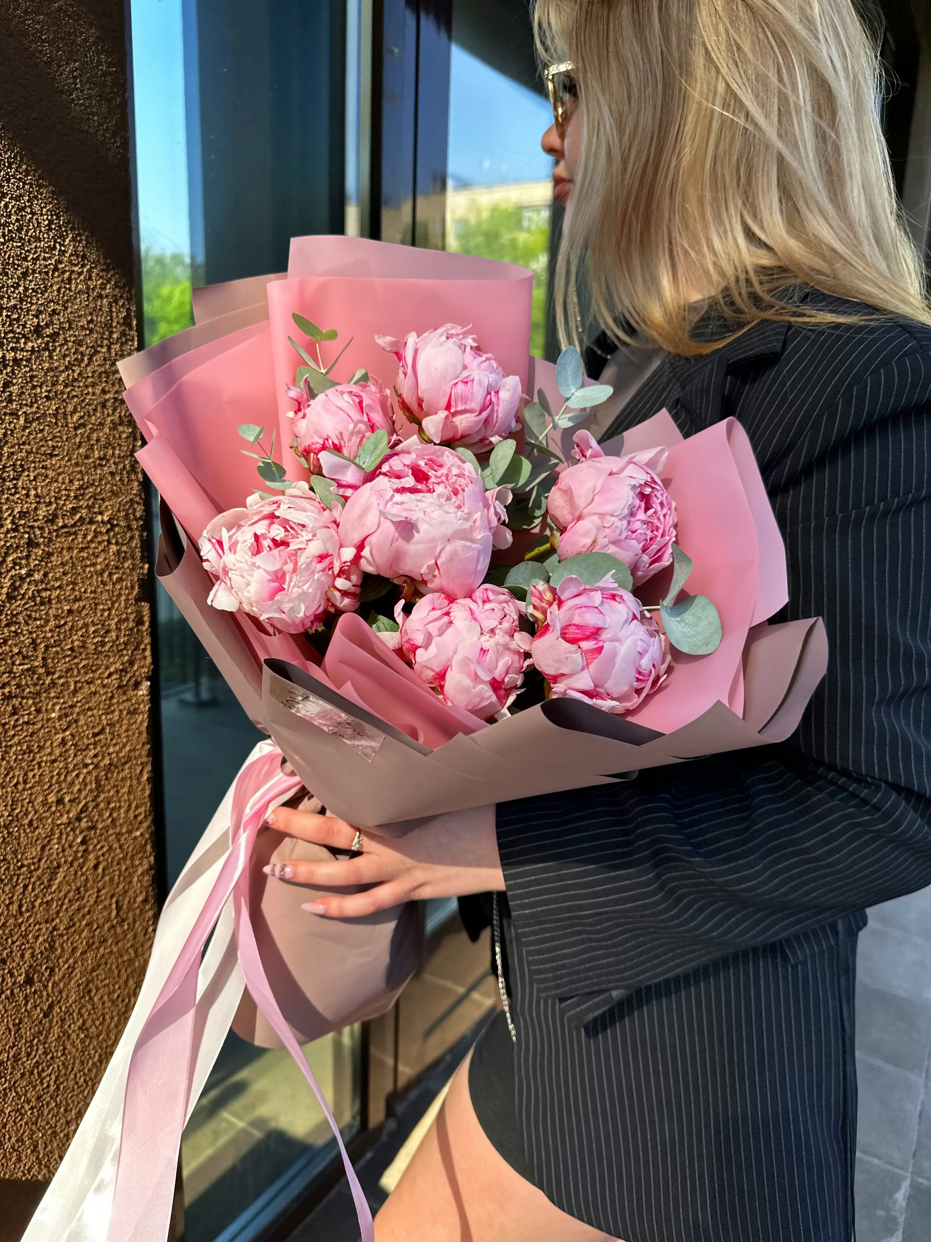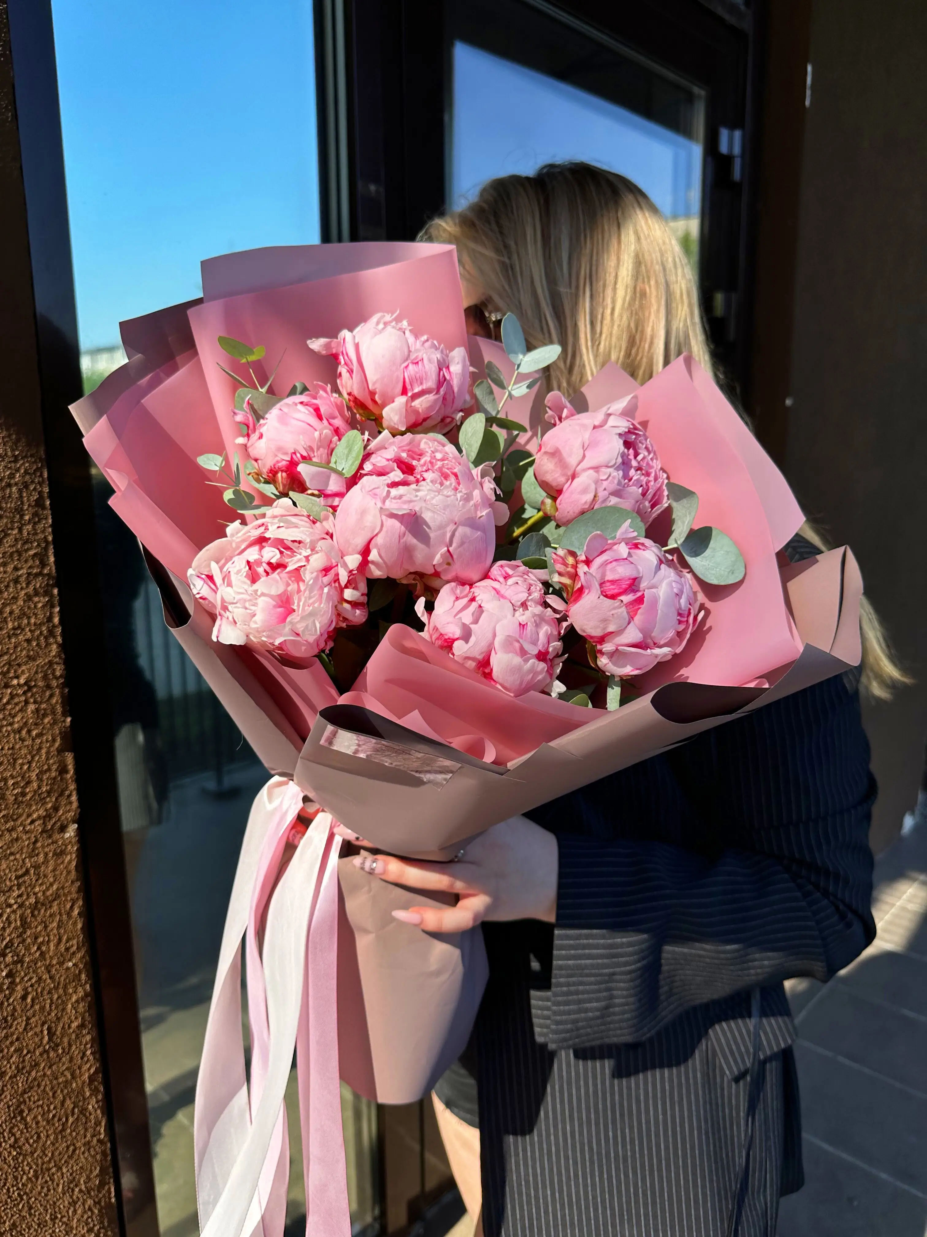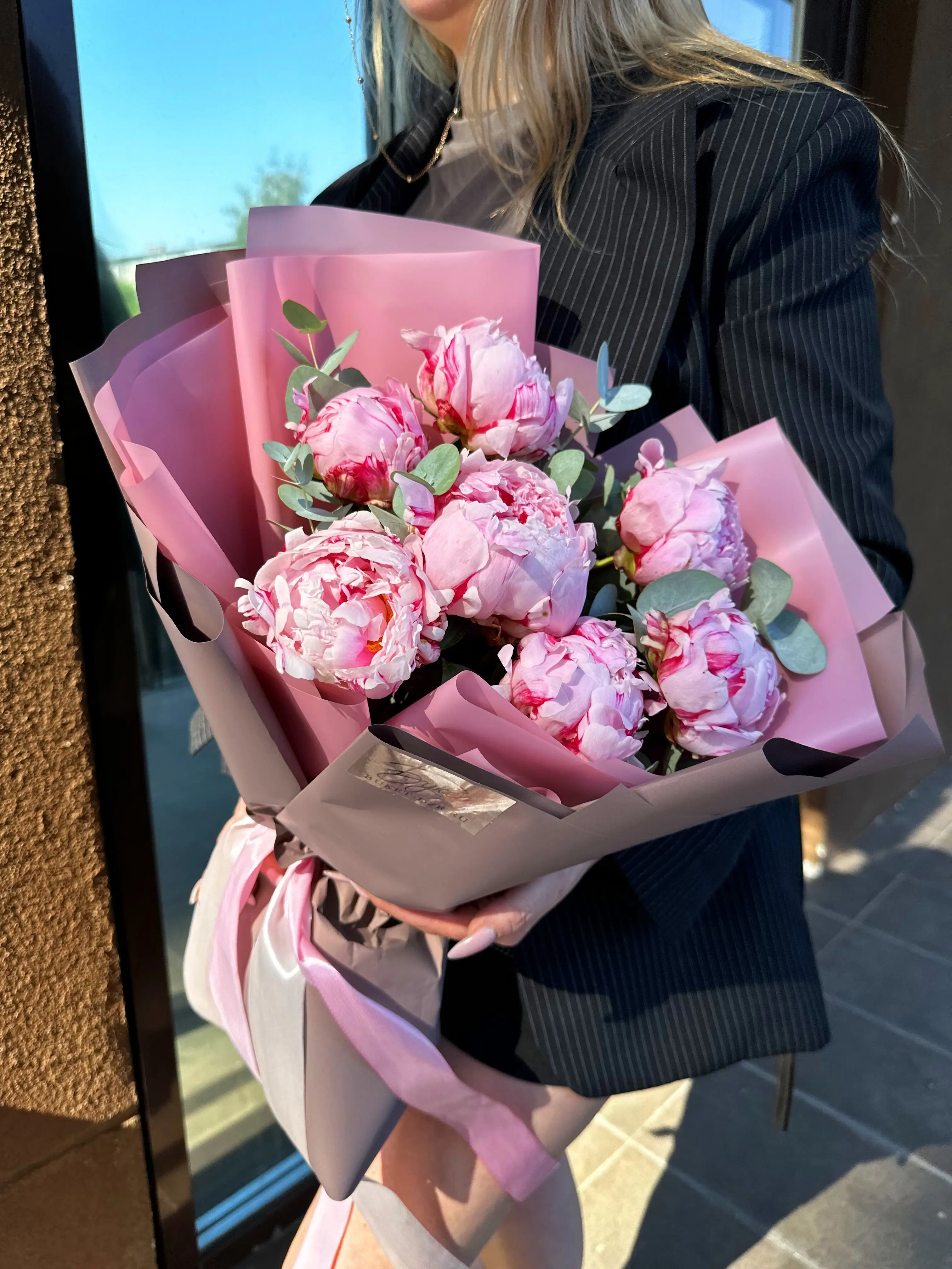Букет из 7 пионов с эвкалиптом — купить по цене от 4820 руб. с доставкой в Нижнем Новгороде