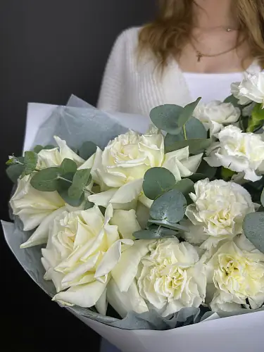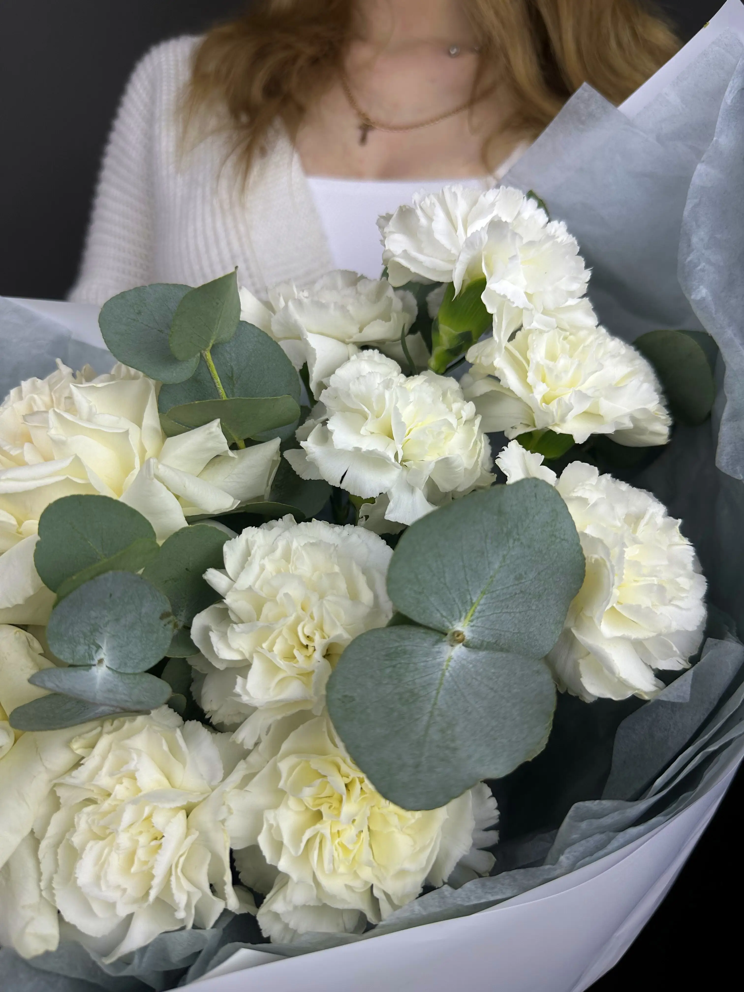 Букет с белыми розами и диантусами — купить по цене от 3560 руб. с доставкой в Нижнем Новгороде