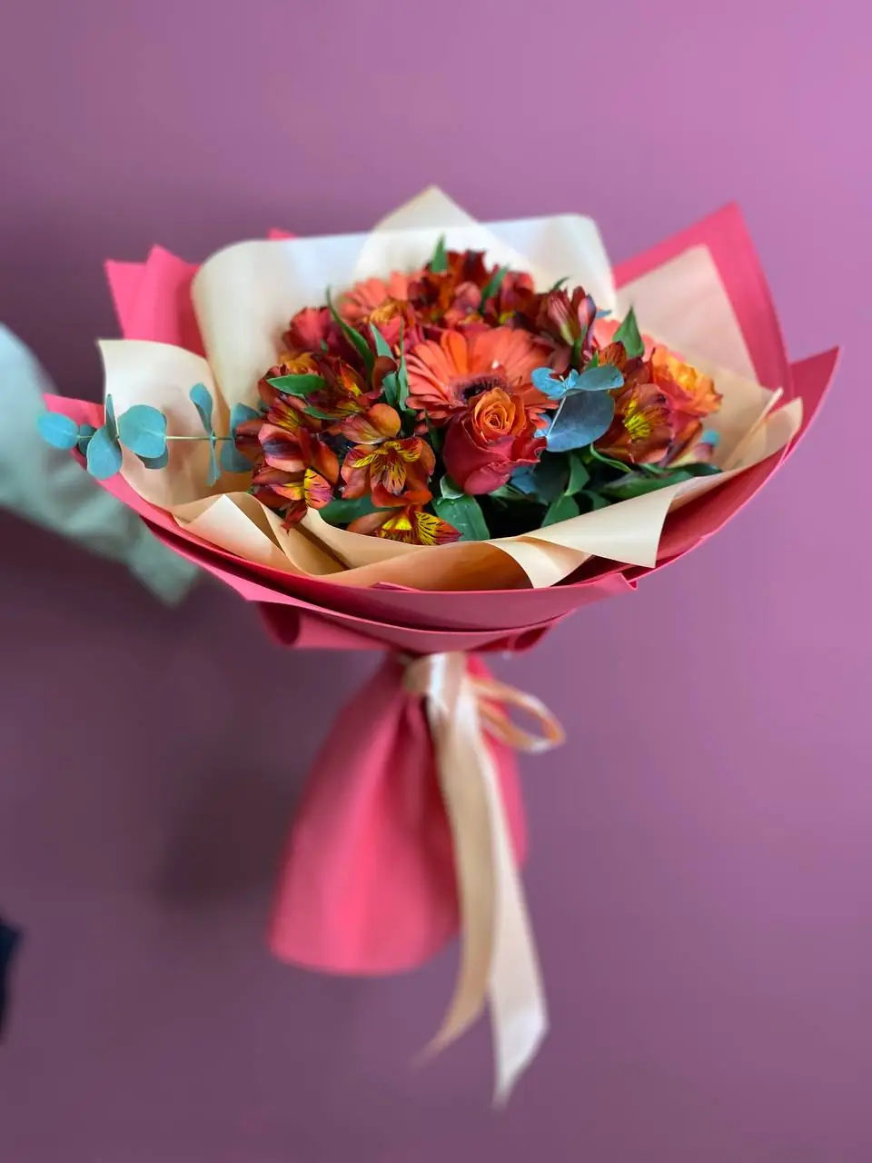 Соберем в день доставки, только из свежих цветов и затем с улыбкой вручим получателю.