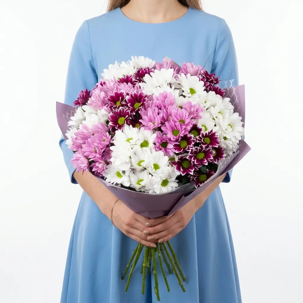 Сборный букет авторский из хризантем микс — купить по цене от 5550 руб. с доставкой в Нижнем Новгороде