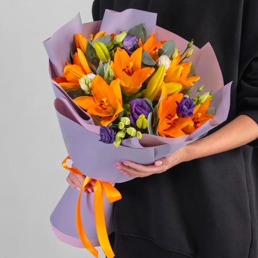Букет из лилий и эустом — купить по цене от 6200 руб. с доставкой в Нижнем Новгороде
