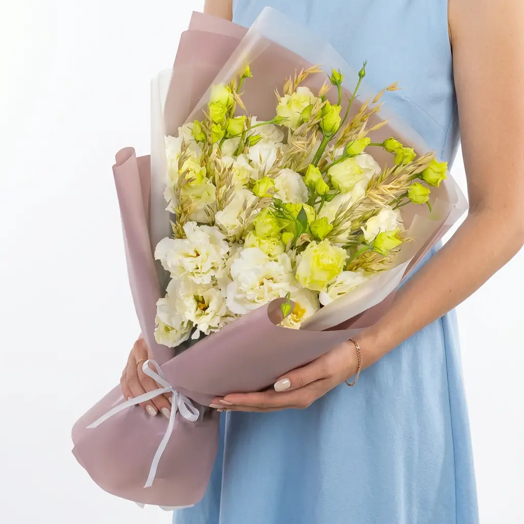 Букет из лизиантусов и пшеницы — купить по цене от 6360 руб. с доставкой в Нижнем Новгороде