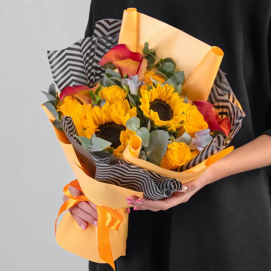 Букет из подсолнухов и калл