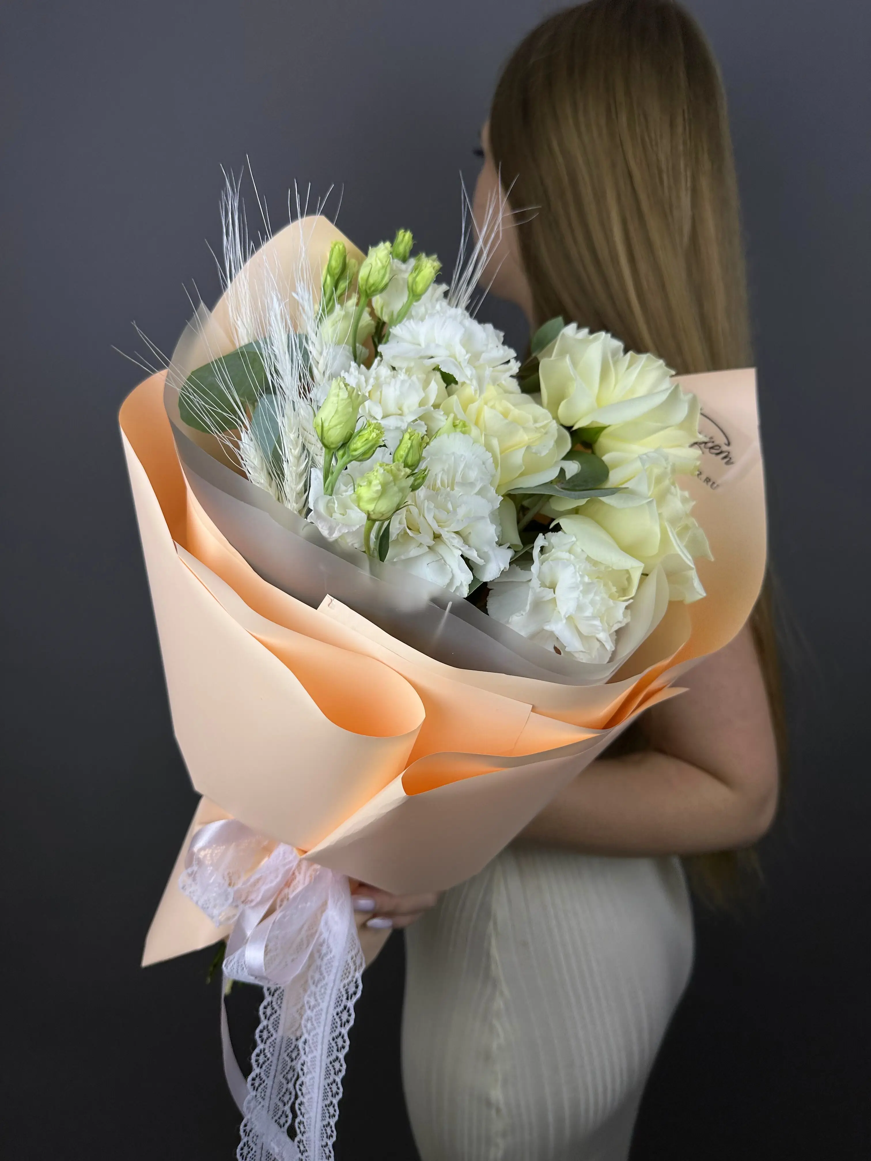 Композиция из роз и белых диантусов — купить по цене от 3067 руб. с доставкой в Нижнем Новгороде