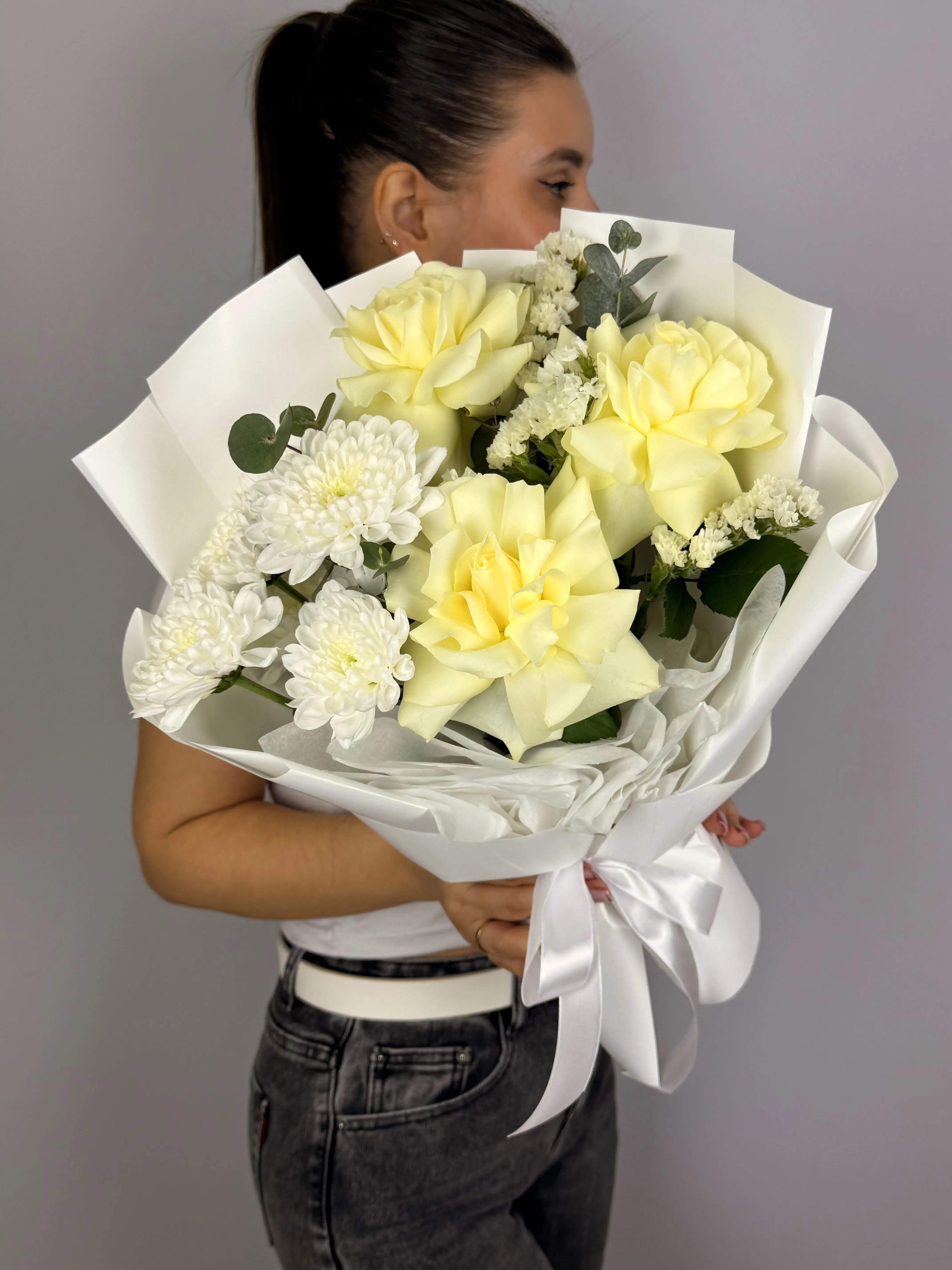 Соберем в день доставки, только из свежих цветов и затем с улыбкой вручим получателю.