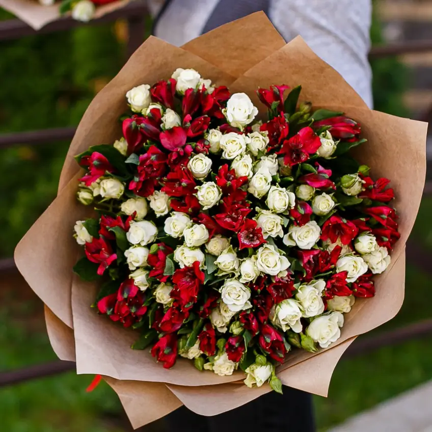 Букет "Красные Альстромерии и Розы" — купить по цене от 8020 руб. с доставкой в Нижнем Новгороде