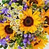 На фото - Букет полевых цветов. В составе данной композиции: Подсолнух - 5 шт., Ирис - 7 шт., Матрикария - 6 шт., Хризантема кустовая - 2 шт., Зелень, Лента атласная. На сайте sbuket-nn.ru Вы найдете большой выбор недорогих букетов, цветочных композиций для любого повода. У нас можно заказать Букет полевых цветов за 5710 руб.