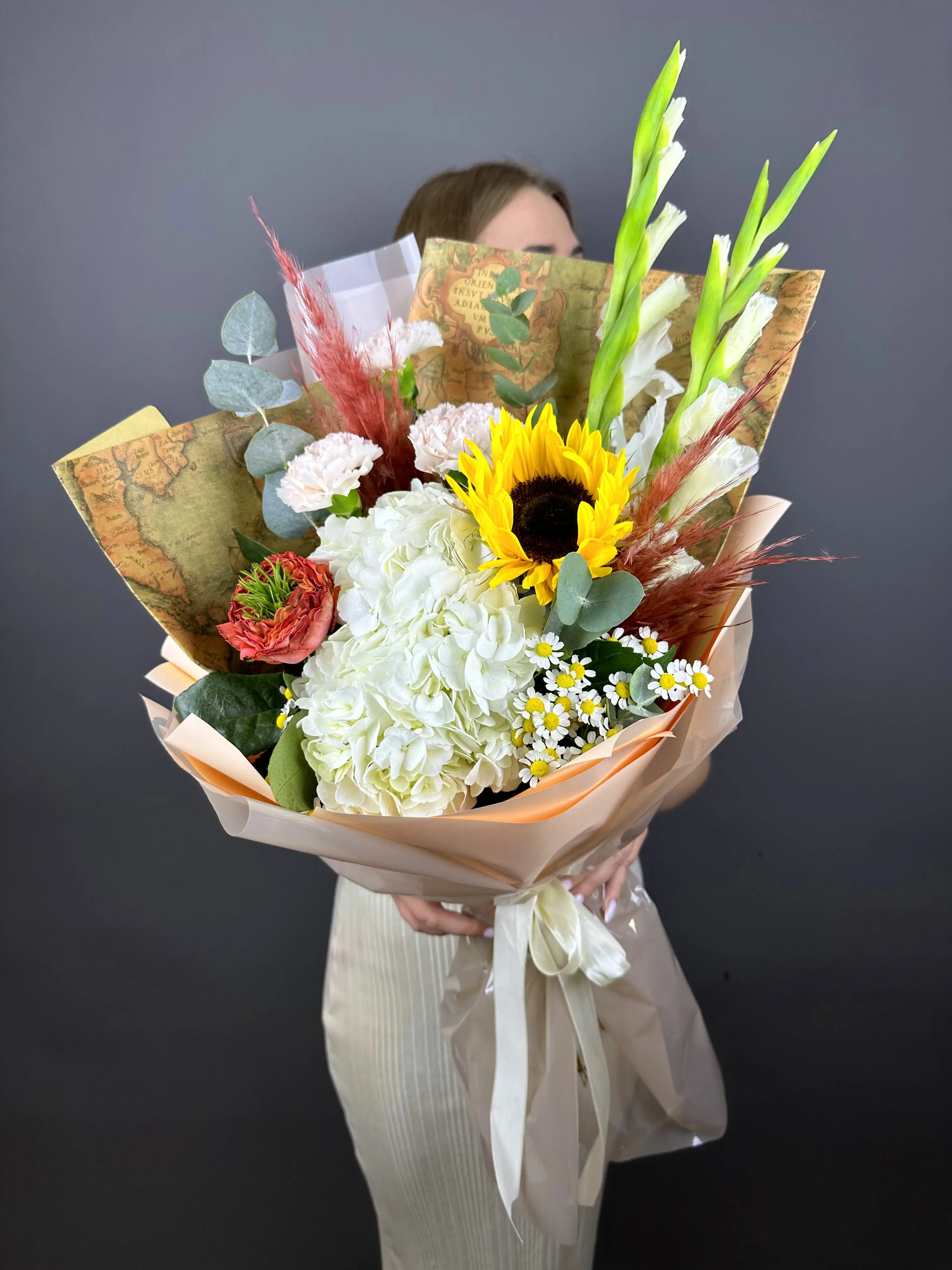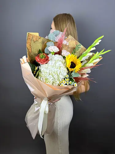 Соберем в день доставки, только из свежих цветов и затем с улыбкой вручим получателю.