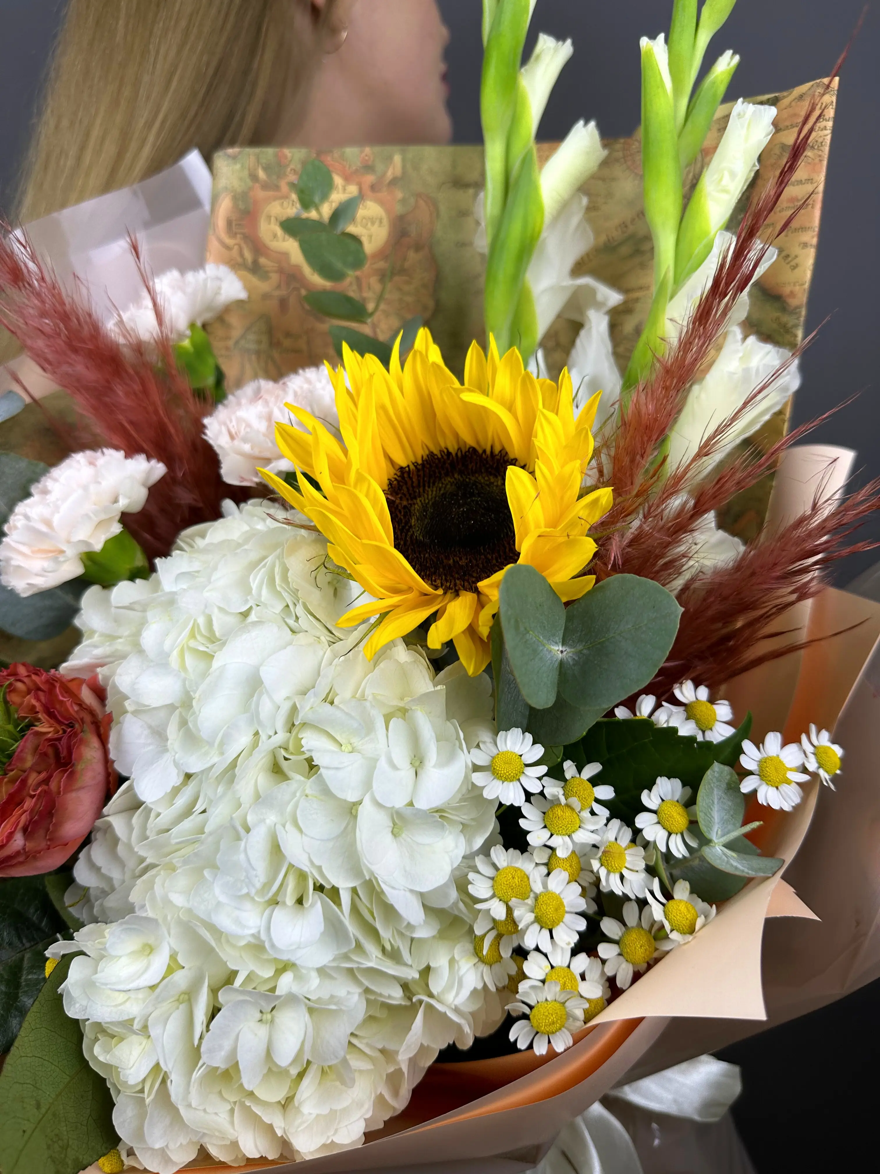 Белая Гортензия и Подсолнух — купить по цене от 4410 руб. с доставкой в Нижнем Новгороде