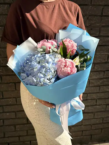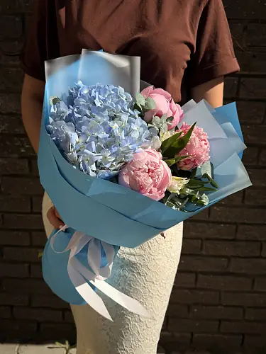 Букет с гортензией и ароматными пионами — купить по цене от 3740 руб. с доставкой в Нижнем Новгороде