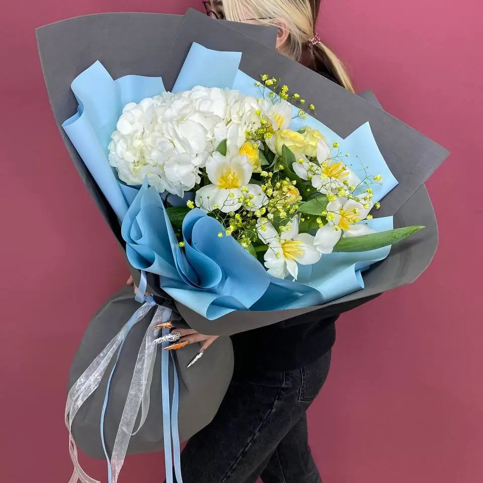 Букет с гортензией и тюльпанами — купить по цене от 3720 руб. с доставкой в Нижнем Новгороде