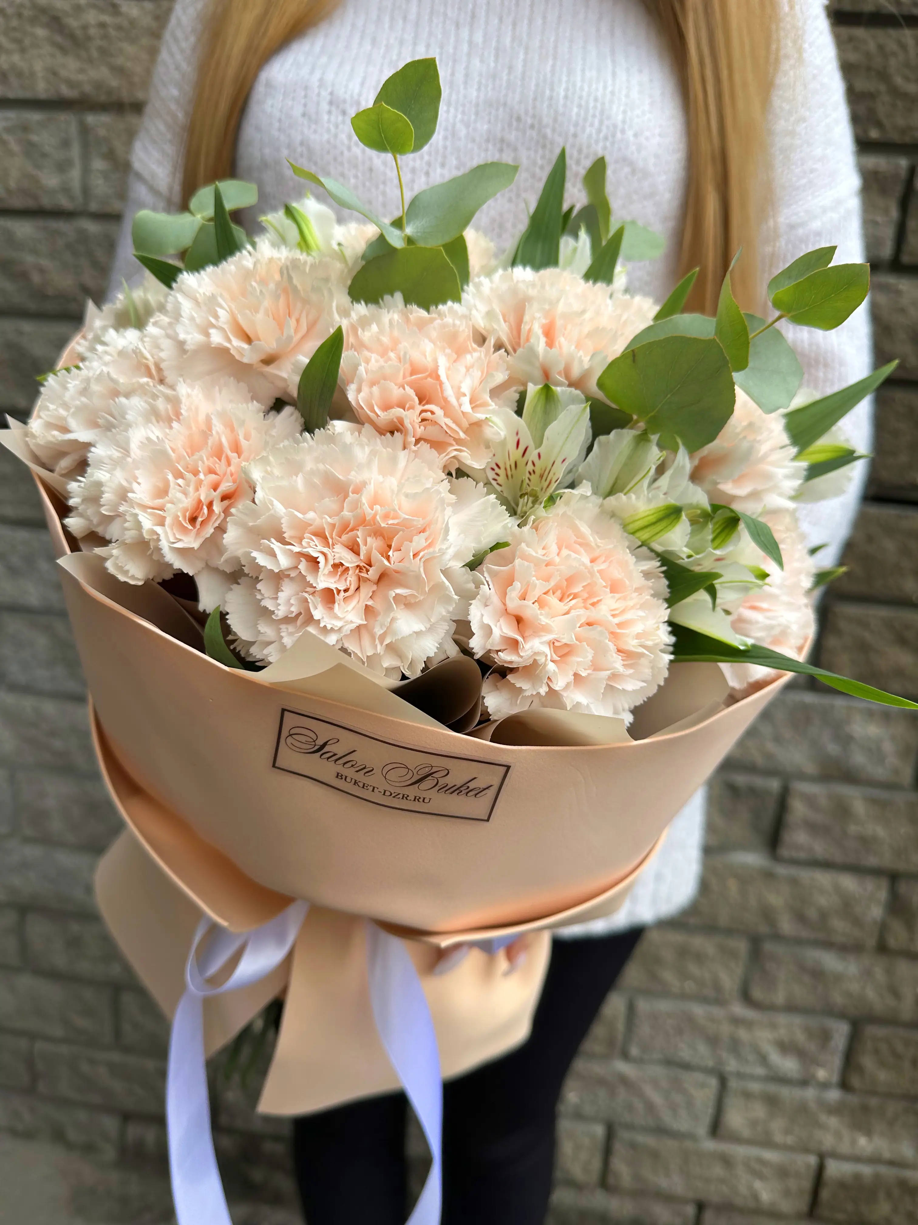 Композиция с гвоздикой и альстромерий — купить по цене от 4200 руб. с доставкой в Нижнем Новгороде