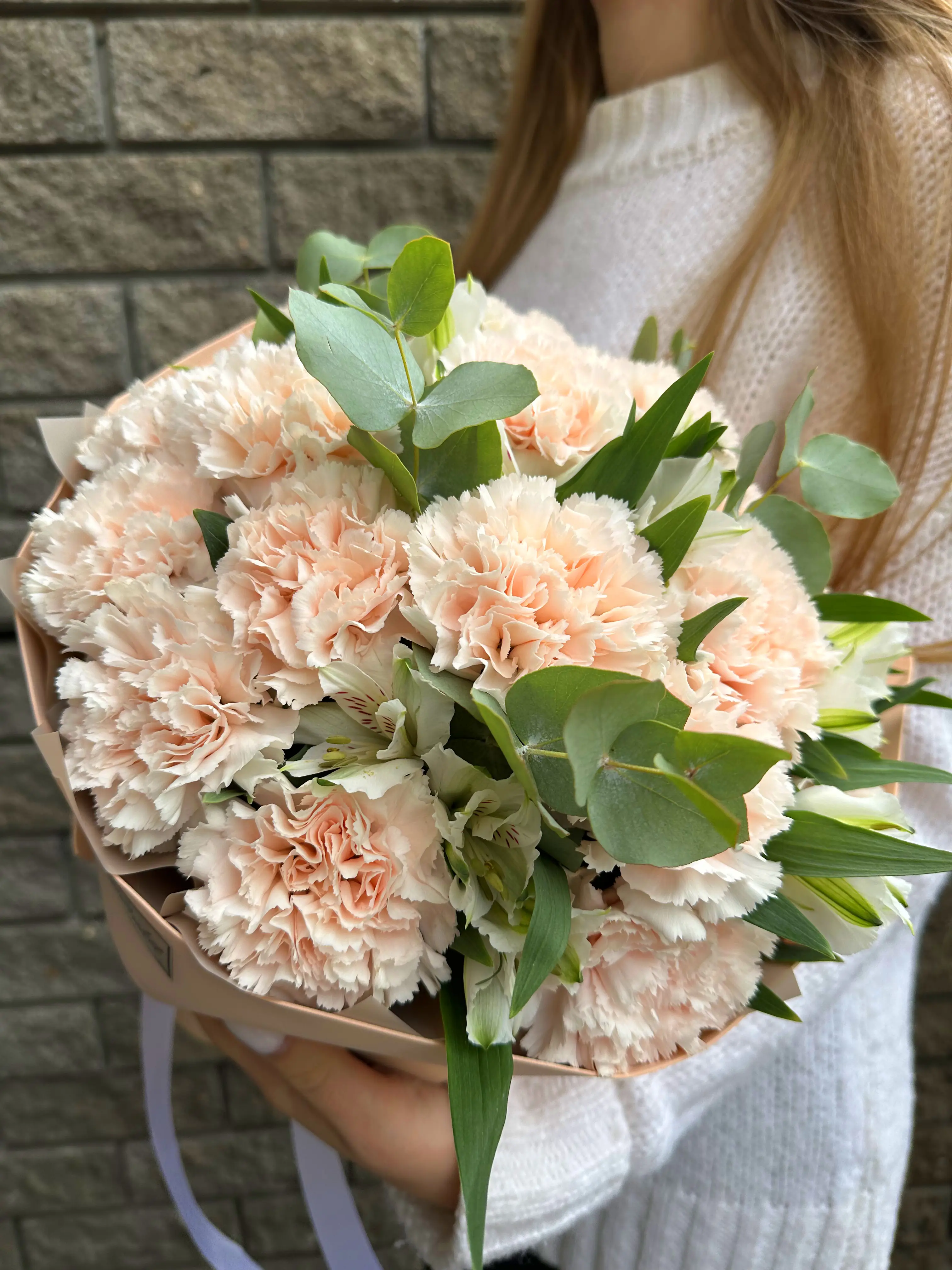 Композиция с гвоздикой и альстромерий