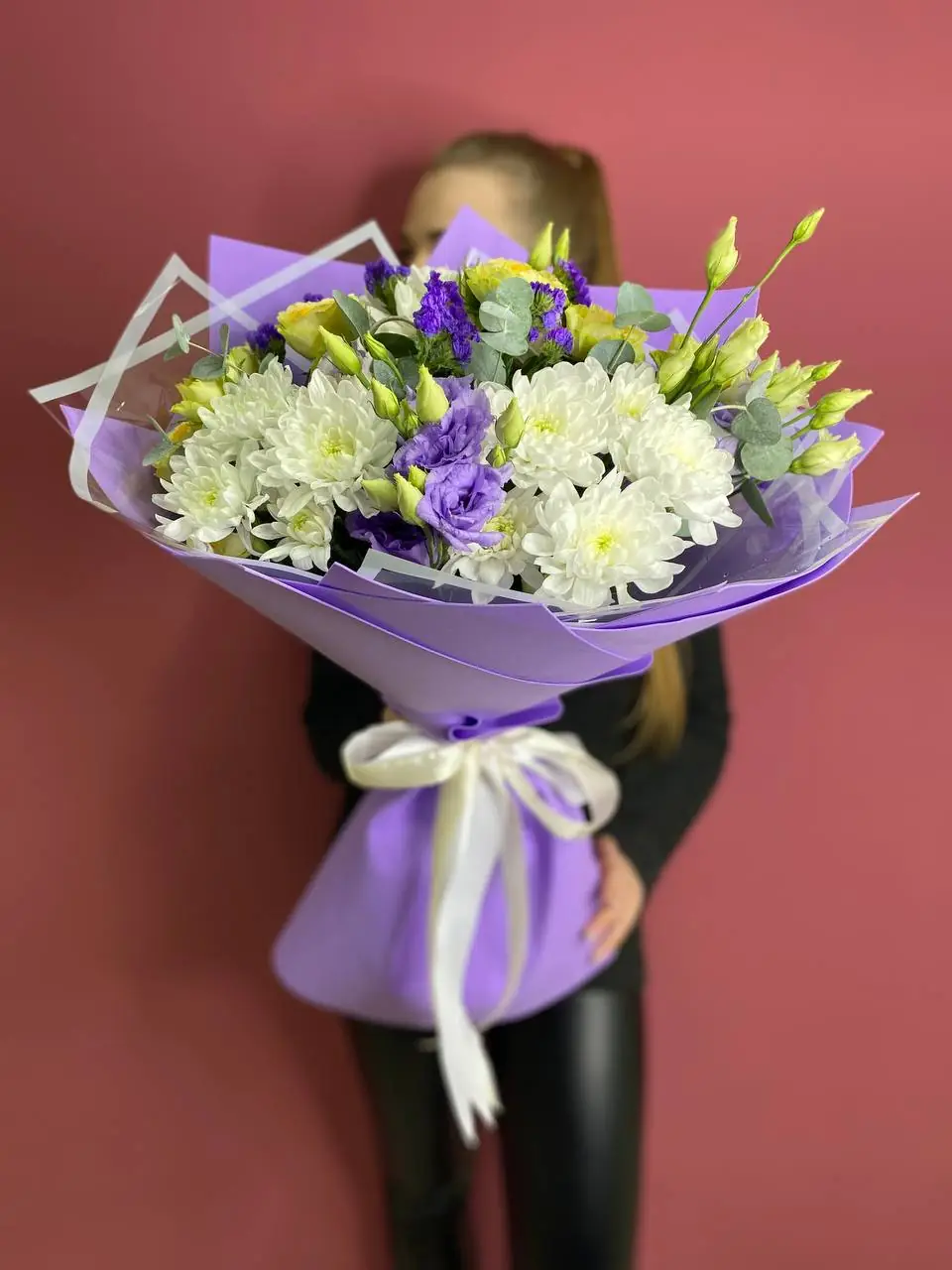 Букет из эустомы и хризантем купить в Нижнем Новгороде | Букет с эустомами и хризантемами цена