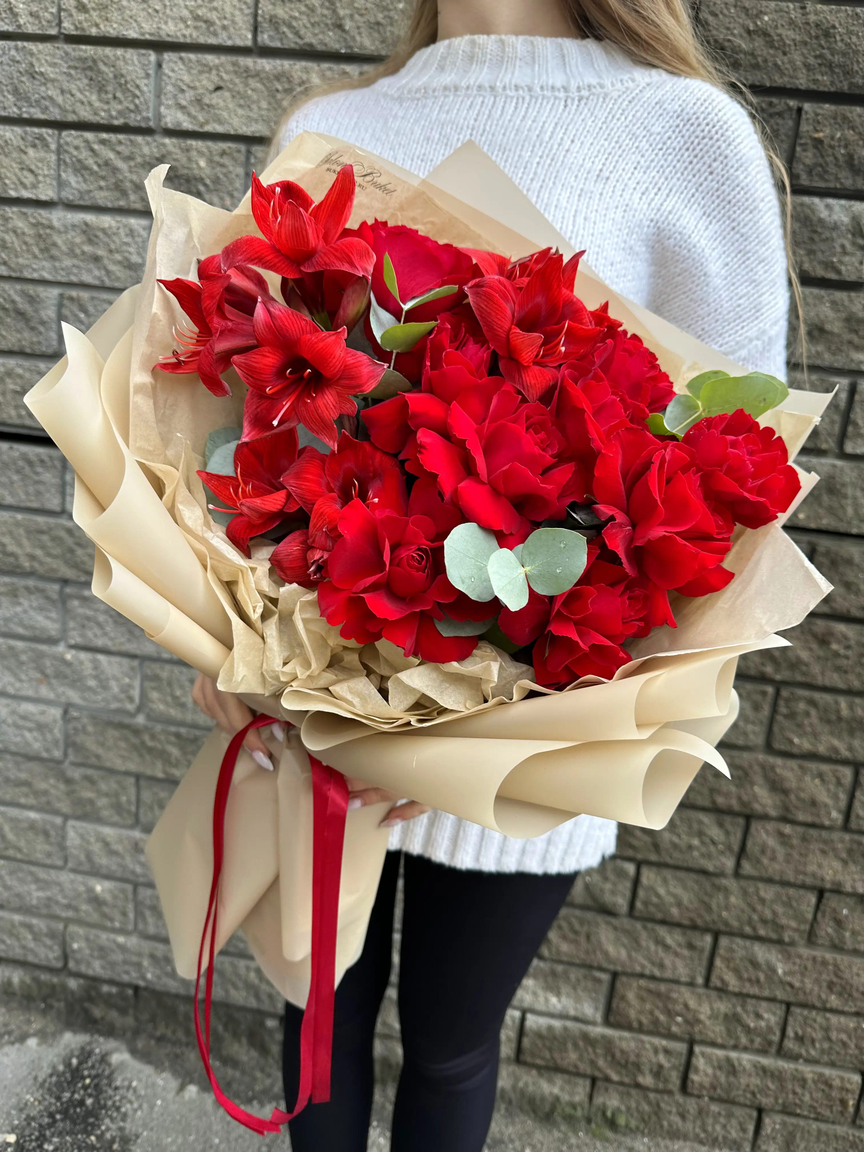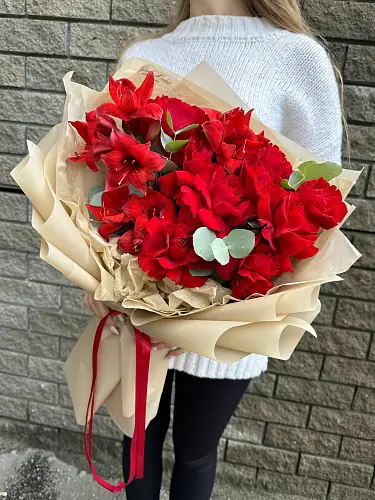 Букет с красными розами и амариллисом — купить по цене от 4101 руб. с доставкой в Нижнем Новгороде