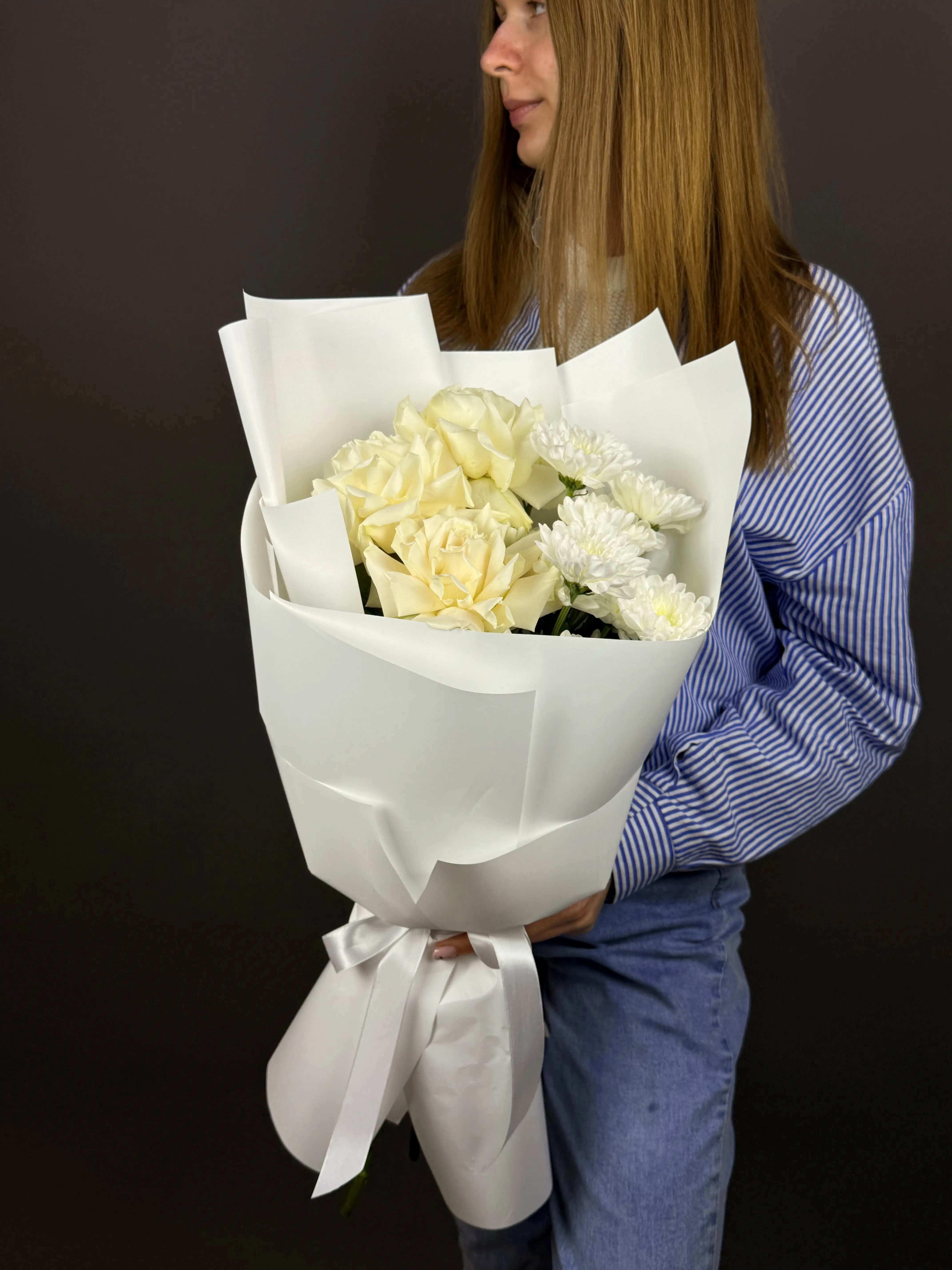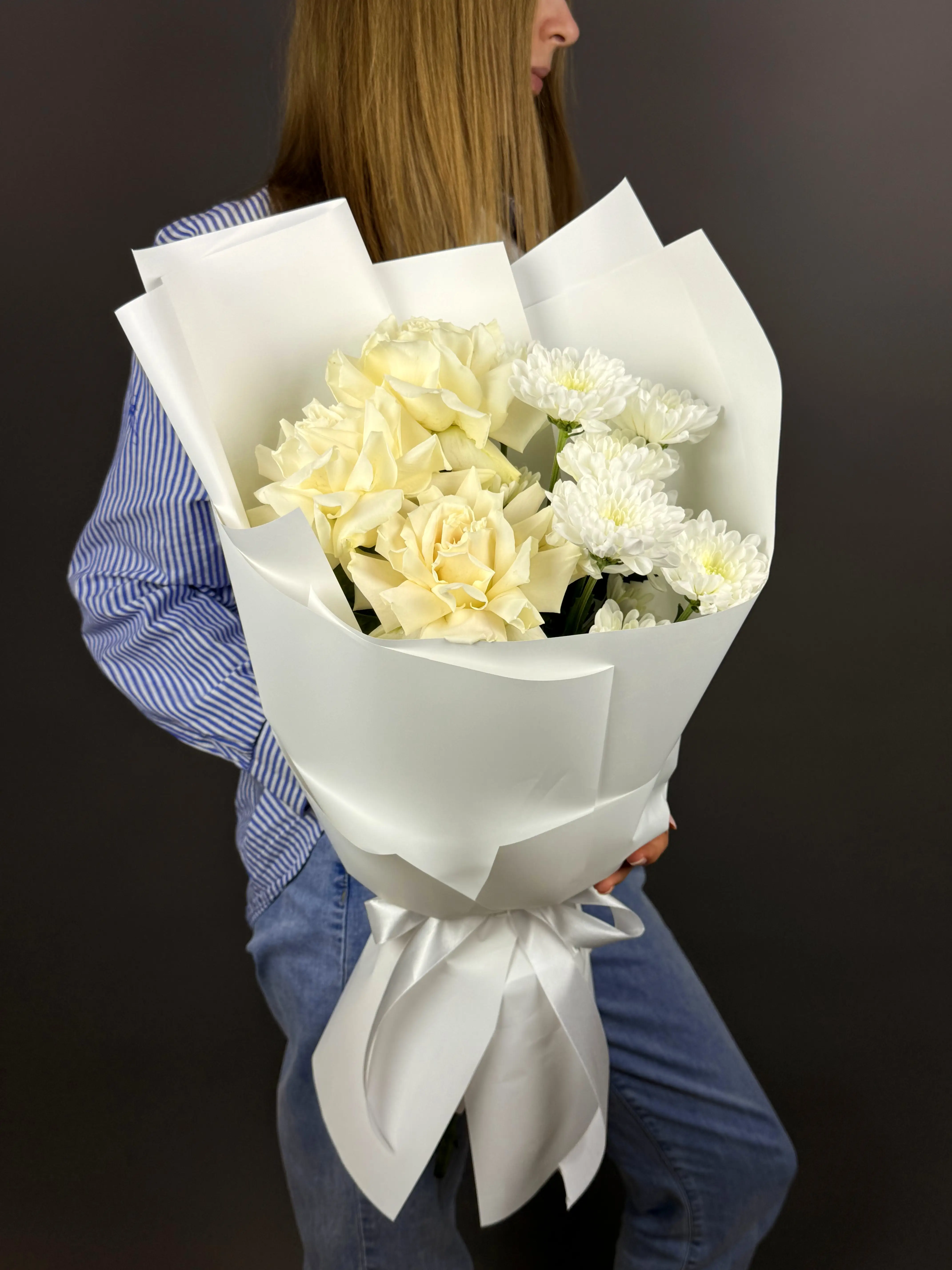 Букет с кустовой хризантемой и розами — купить по цене от 2390 руб. с доставкой в Нижнем Новгороде