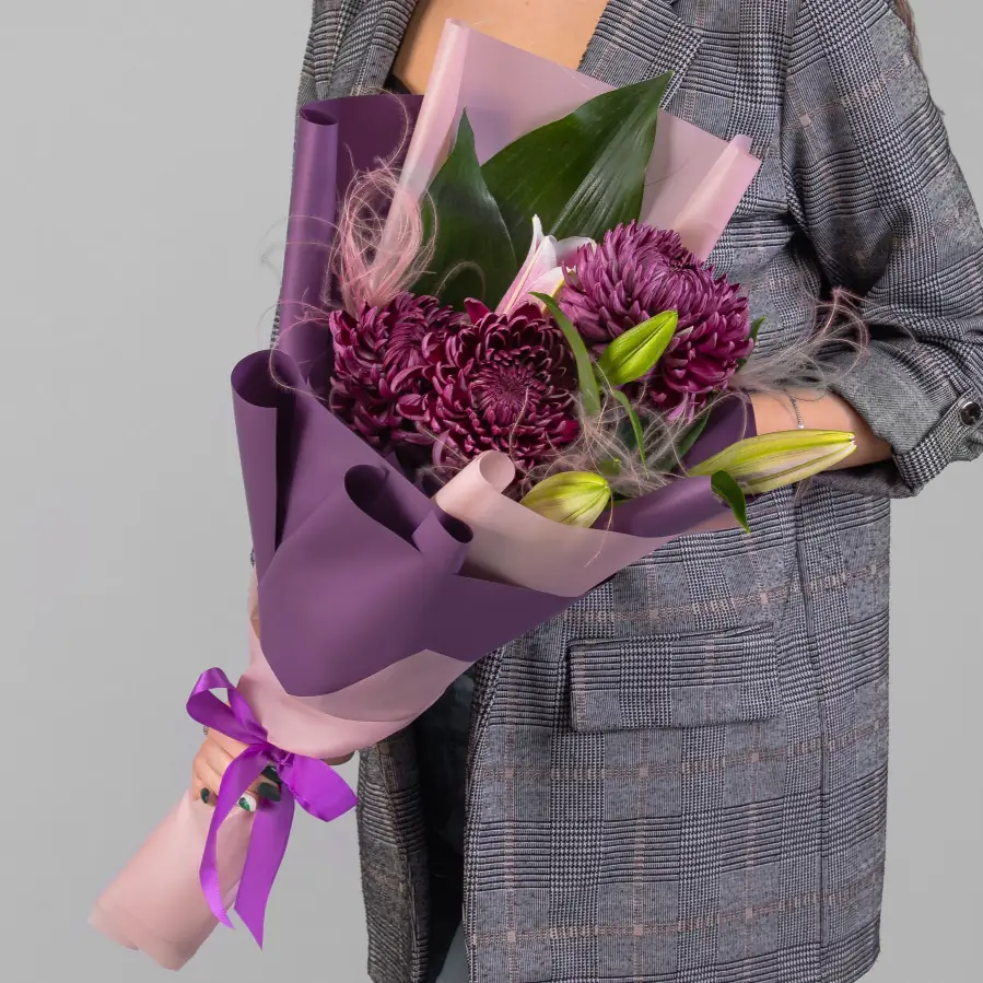 Букет с лилиями и хризантемами