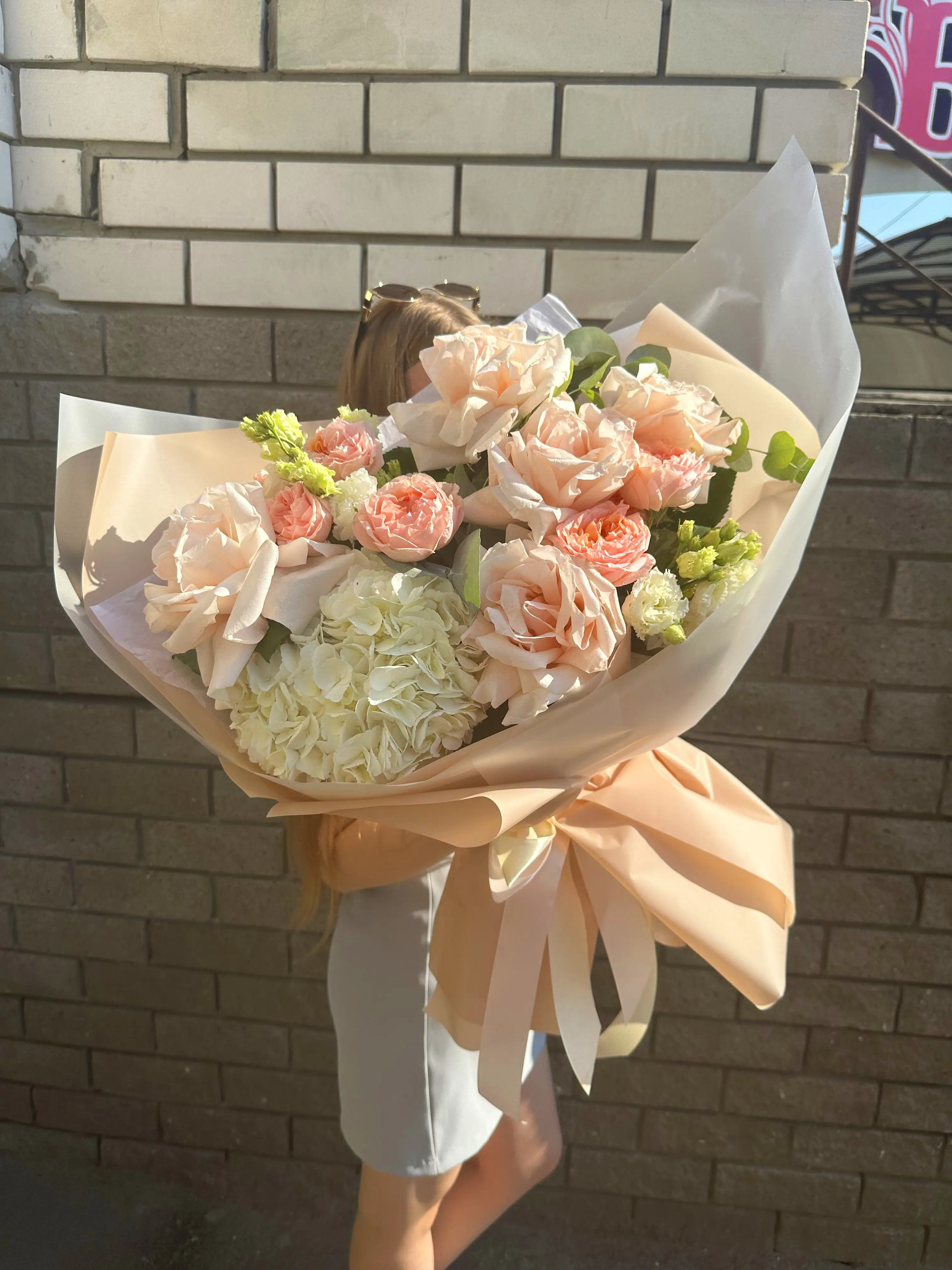 Букет с нежной розой и гортензией из свежих цветов — купить по цене от 5200 руб. с доставкой в Нижнем Новгороде