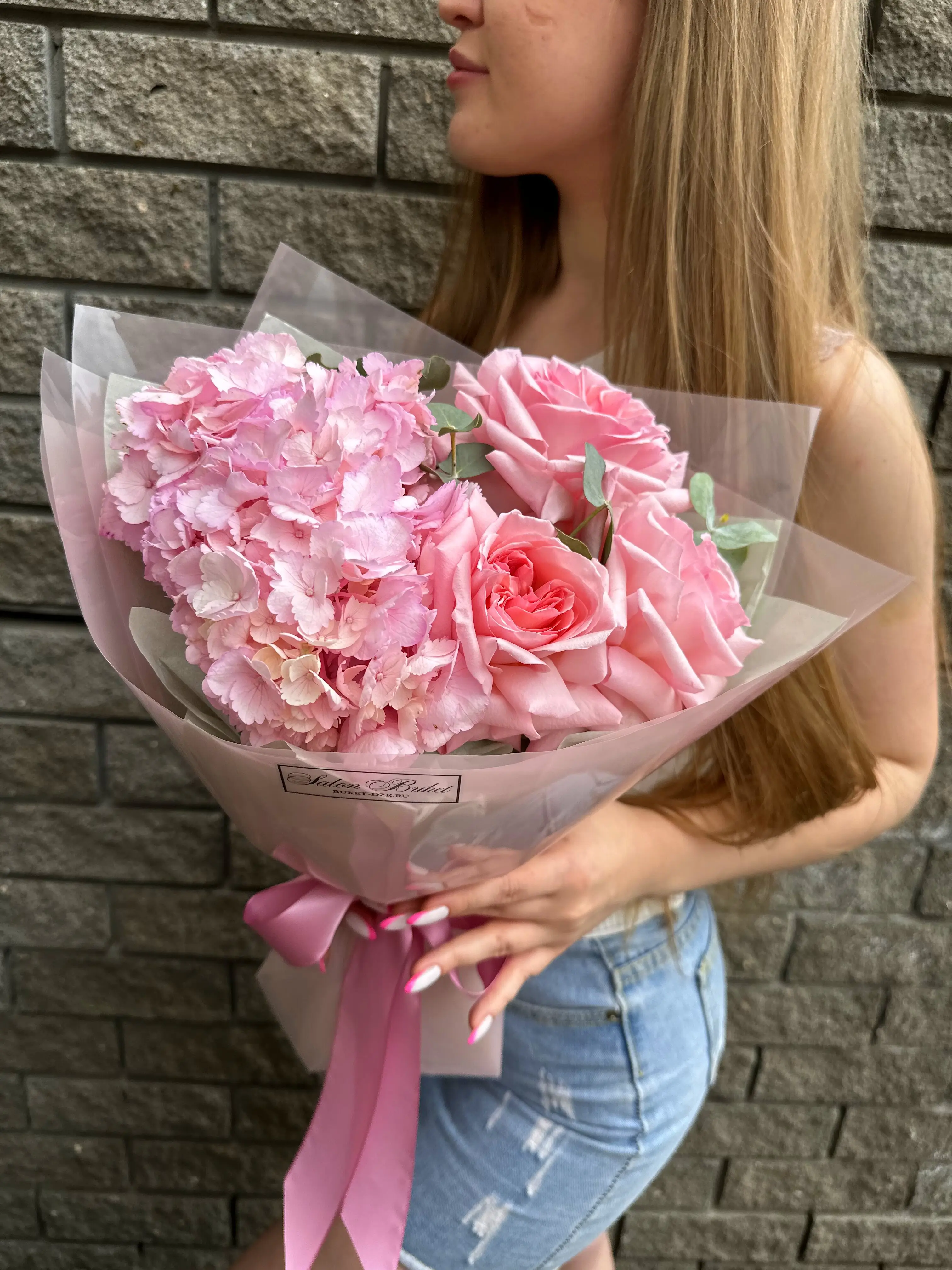 Пионовидные розы и гортензии — купить по цене от 2850 руб. с доставкой в Нижнем Новгороде