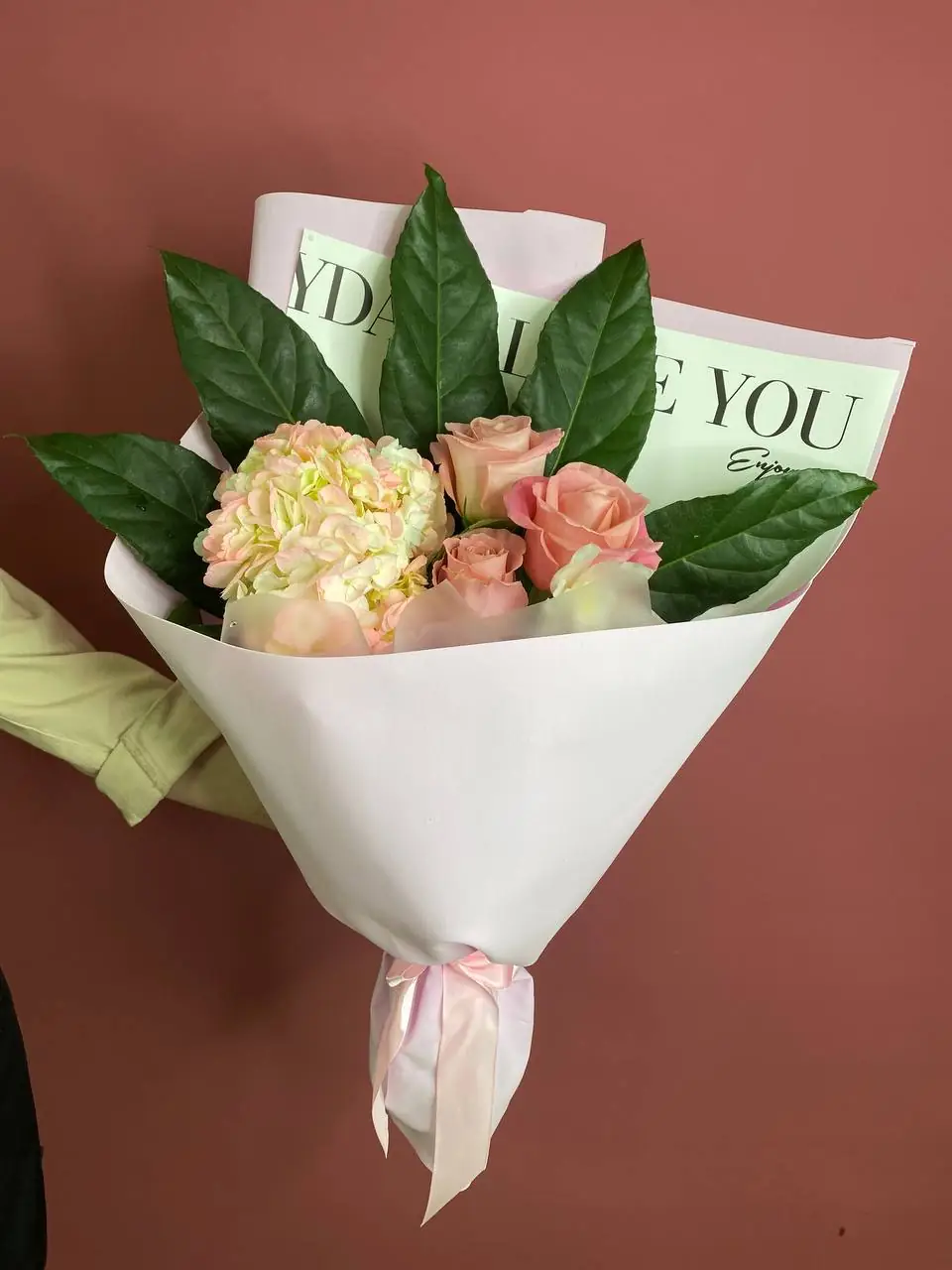 Букет с розами и гортензией — купить по цене от 3090 руб. с доставкой в Нижнем Новгороде