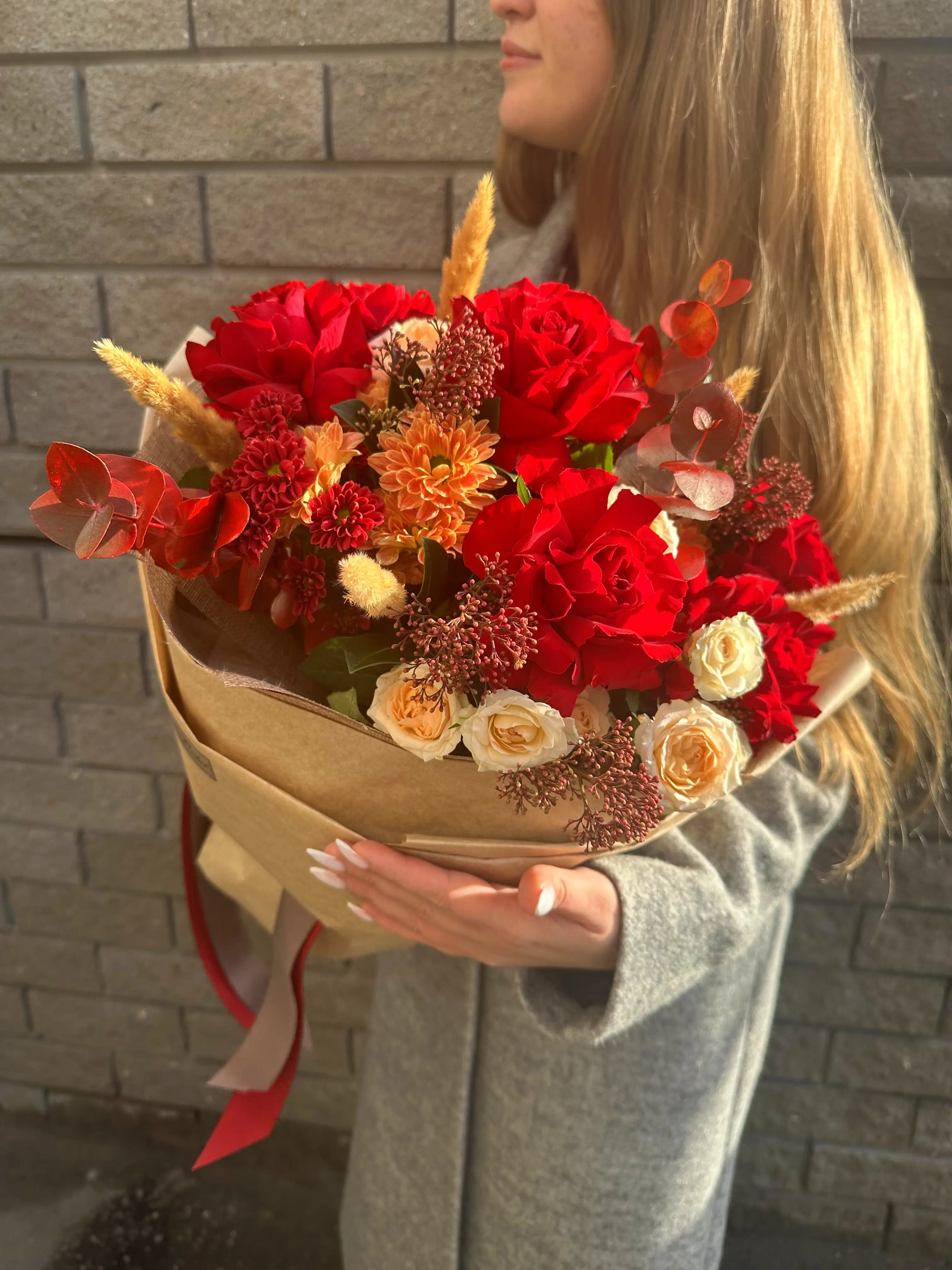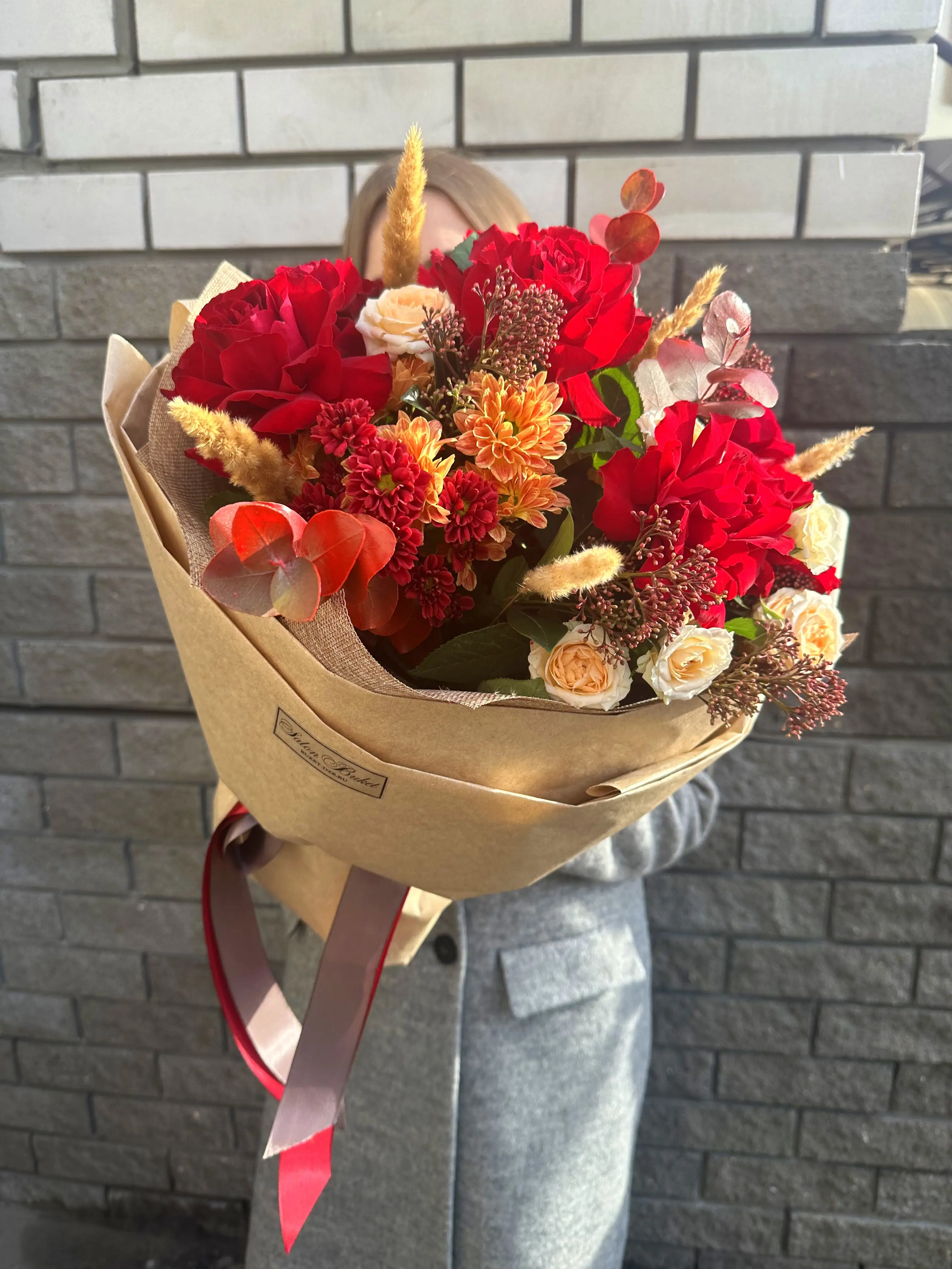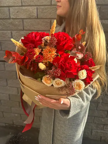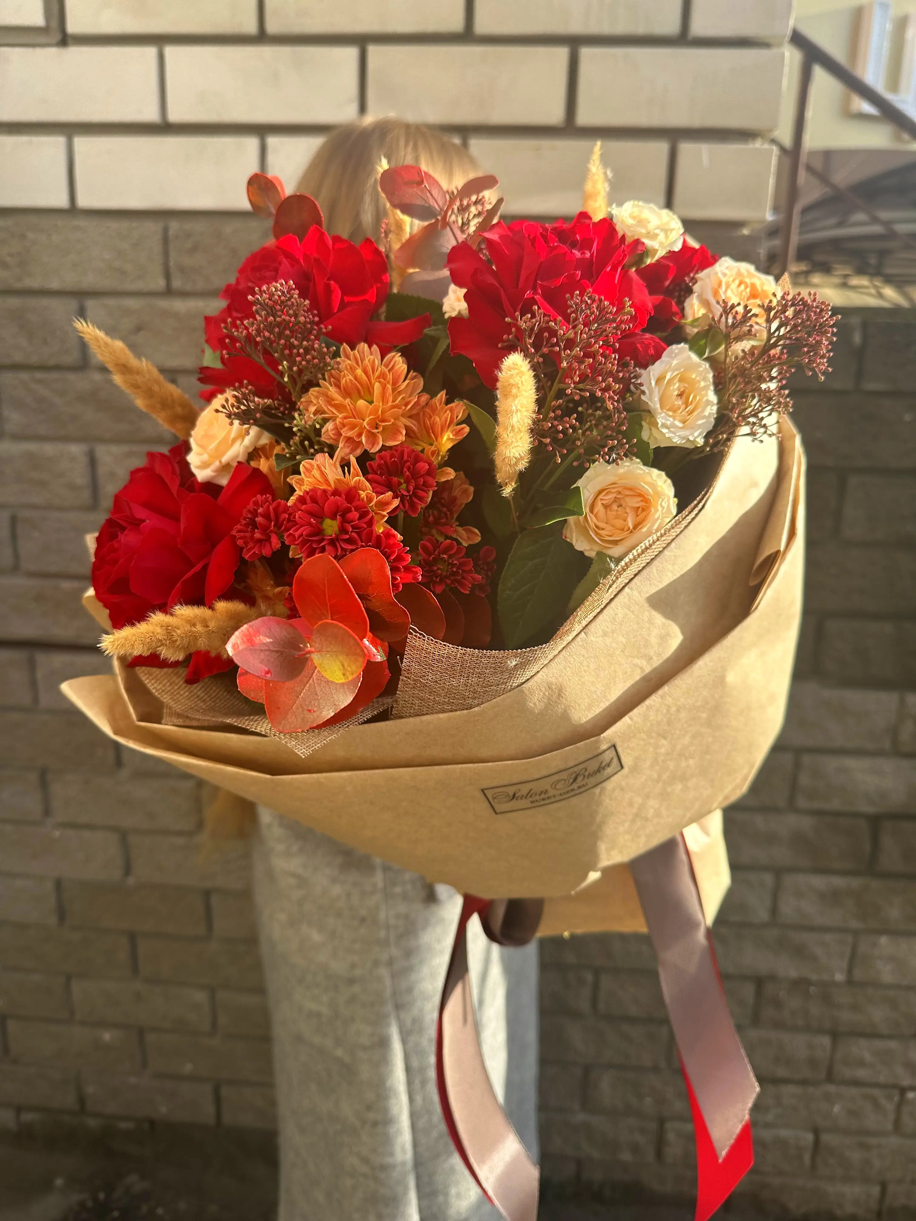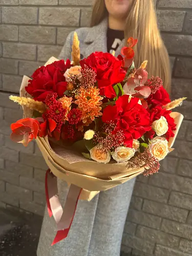 Соберем в день доставки, только из свежих цветов и затем с улыбкой вручим получателю.