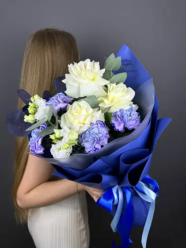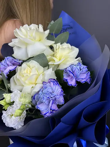 Шикарный Букет с Розами и Синими Диантусами — купить по цене от 3217 руб. с доставкой в Нижнем Новгороде