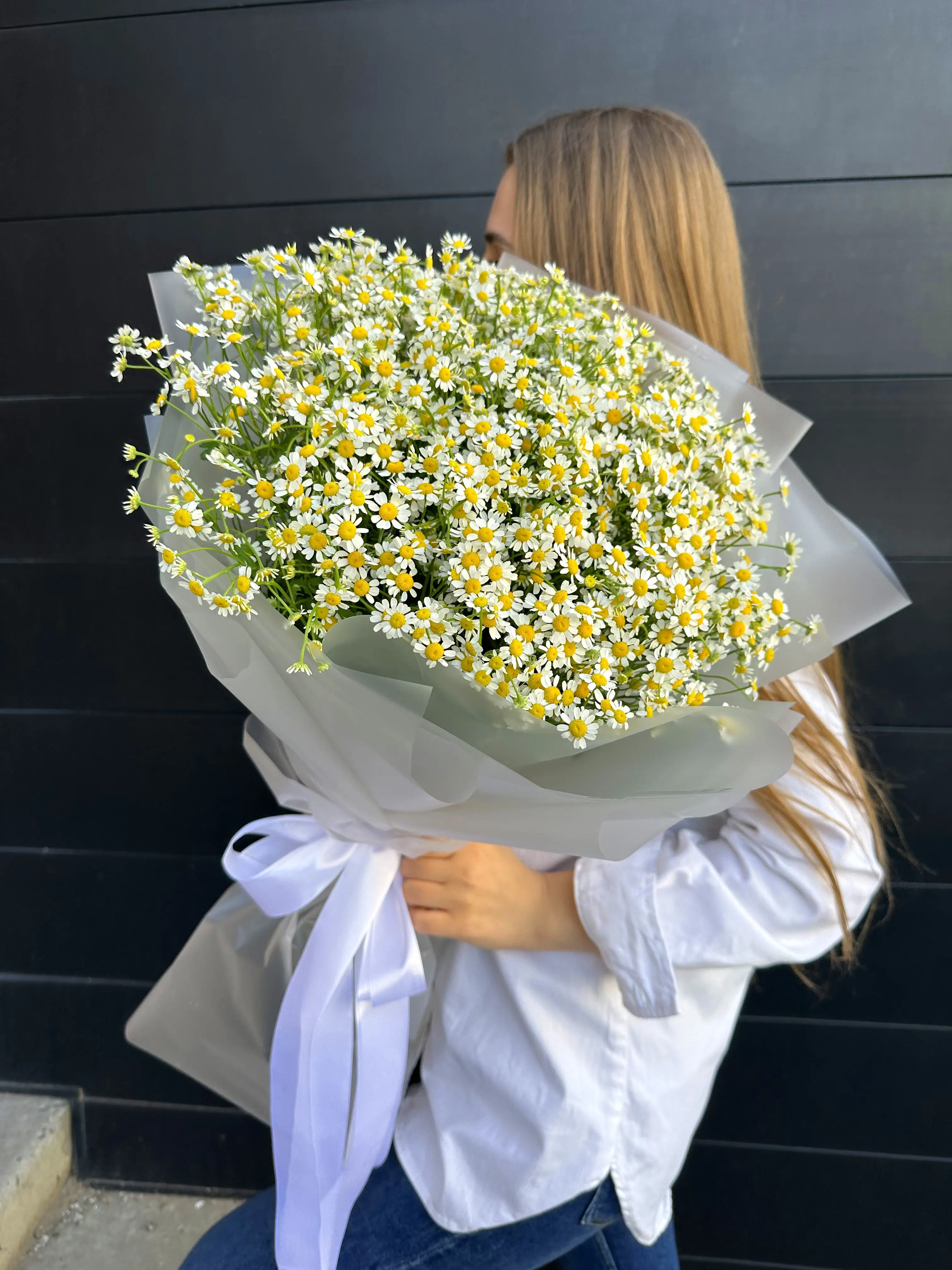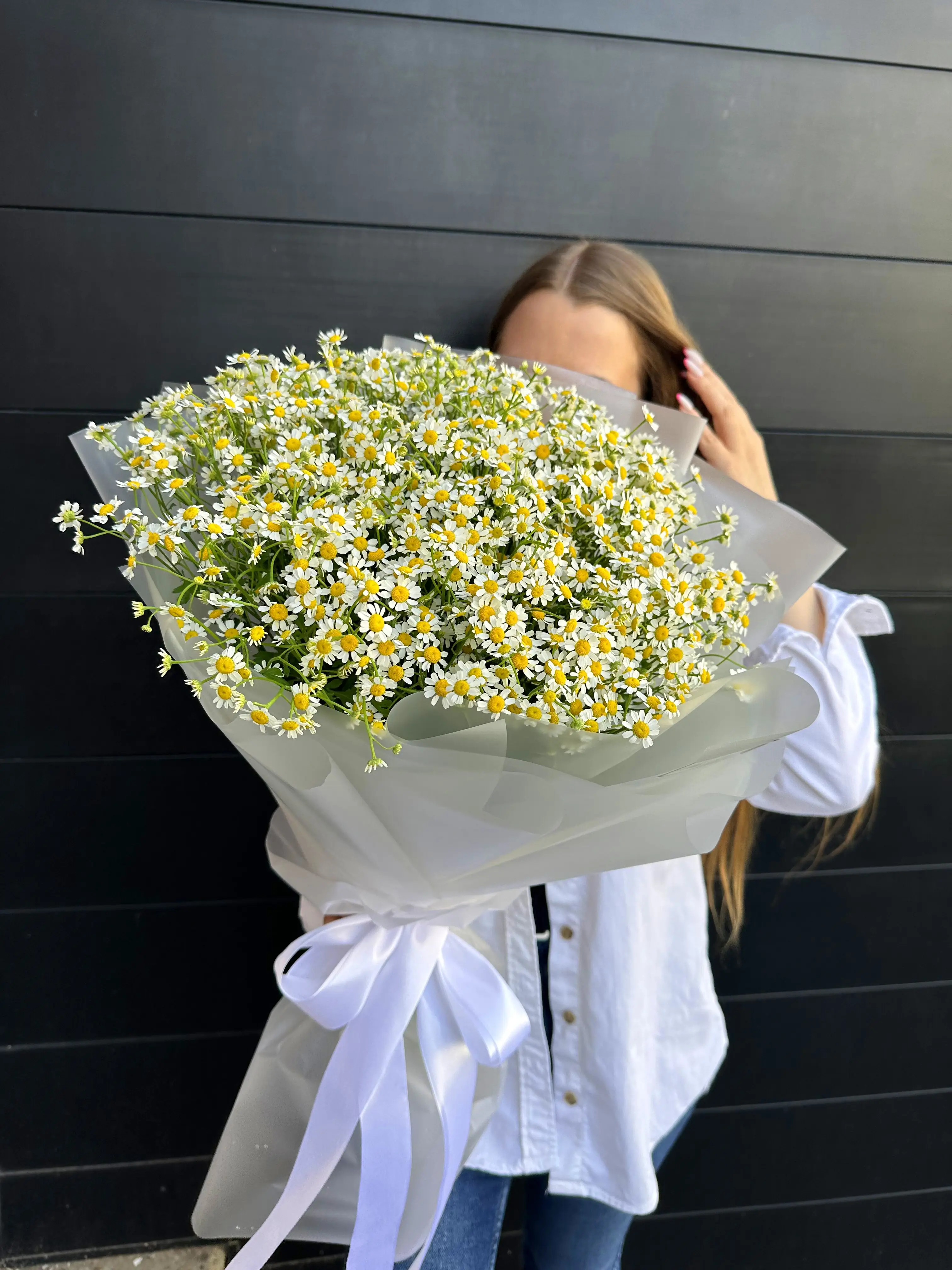 На фото - Матрикария в дизайнерской упаковке. В составе данной композиции: Матрикария - 25 шт, Дизайнерская упаковка, Лента атласная. На сайте sbuket-nn.ru Вы найдете большой выбор недорогих букетов, цветочных композиций для любого повода. У нас можно заказать Матрикария в дизайнерской упаковке за 6050 руб.