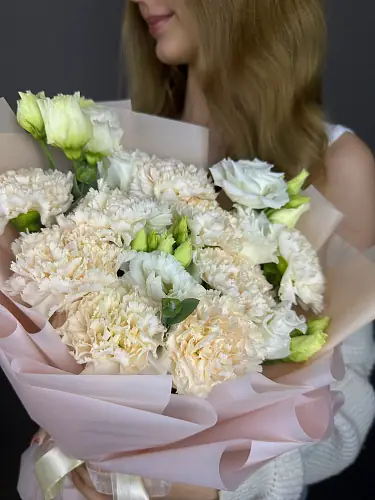 Нежная композиция из эустомы и гвоздики — купить по цене от 3910 руб. с доставкой в Нижнем Новгороде