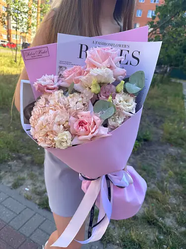 Соберем в день доставки, только из свежих цветов и затем с улыбкой вручим получателю.