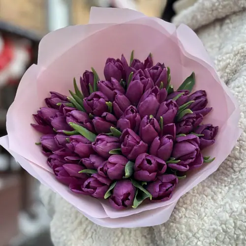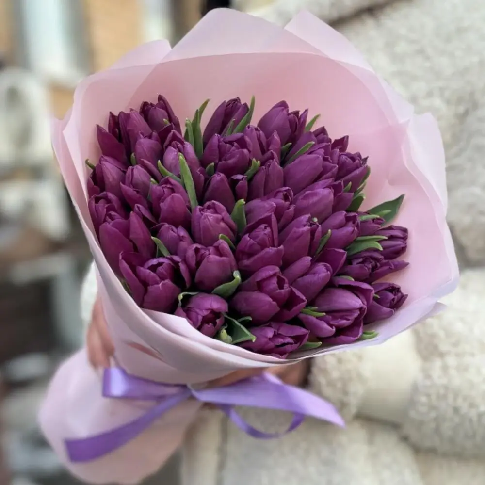 35 фиолетовых тюльпанов — купить по цене от 8300 руб. с доставкой в Нижнем Новгороде