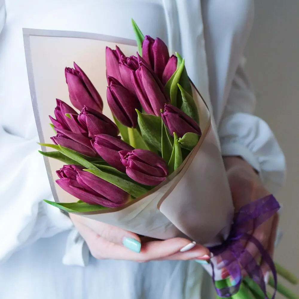 Букет Сиреневых тюльпанов — купить по цене от 4050 руб. с доставкой в Нижнем Новгороде