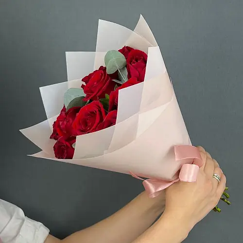 11 роз бордового цвета с эвкалиптом — купить по цене от 2599 руб. с доставкой в Нижнем Новгороде