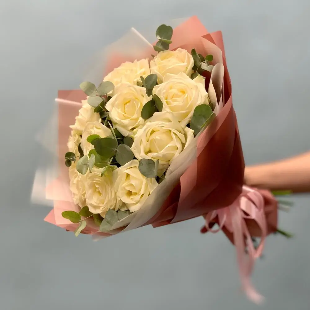 Белые Кенийские розы с зеленью — купить по цене от 3099 руб. с доставкой в Нижнем Новгороде