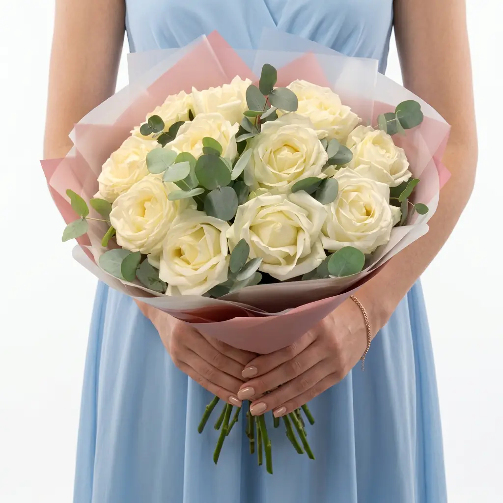 Белые Кенийские розы с зеленью