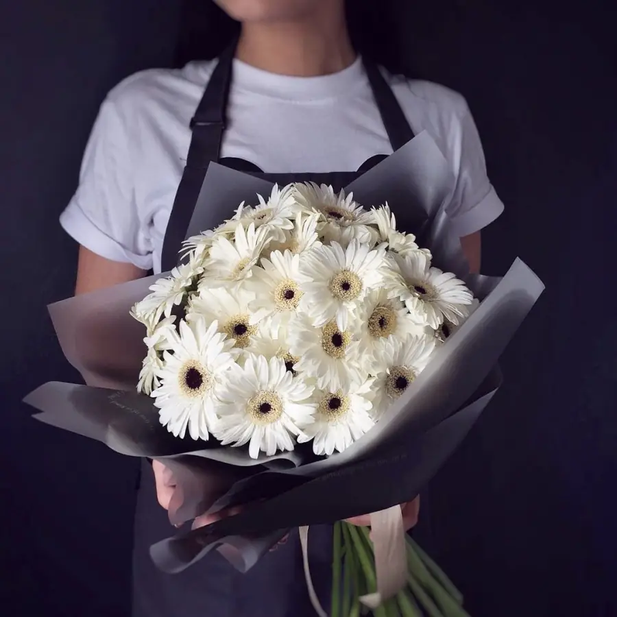 25 Белых Гербер в упаковке — купить по цене от 6200 руб. с доставкой в Нижнем Новгороде