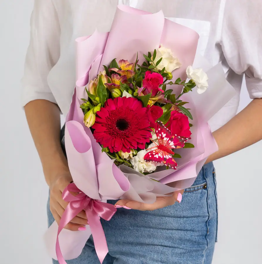 Соберем в день доставки, только из свежих цветов и затем с улыбкой вручим получателю.