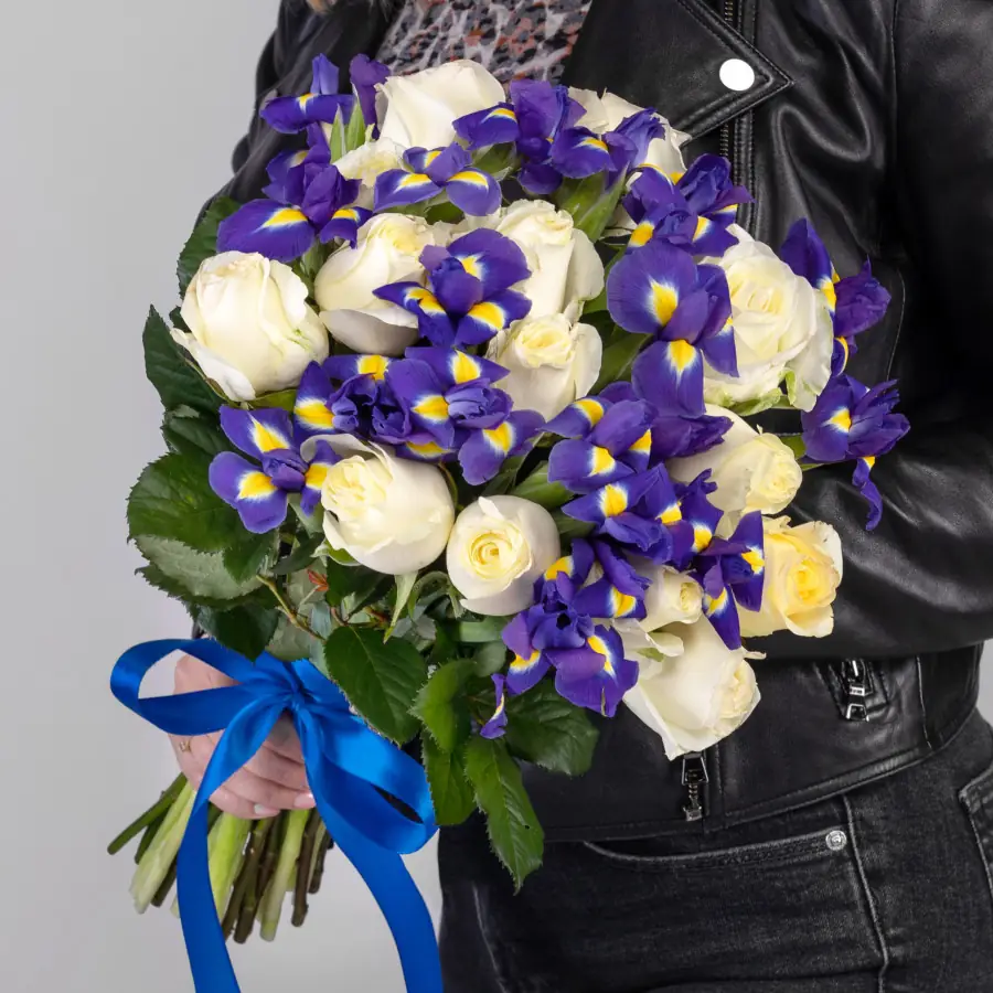 15 Белых Роз и Ирисы под ленту — купить по цене от 7040 руб. с доставкой в Нижнем Новгороде