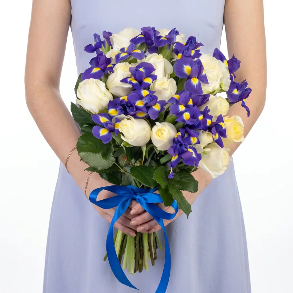 15 Белых Роз и Ирисы под ленту — купить по цене от 7580 руб. с доставкой в Нижнем Новгороде