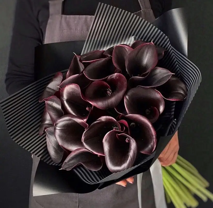 На фото - 25 Бордовых Калл. В составе данной композиции: Калла - 25 шт, Дизайнерская упаковка, Лента атласная. На сайте sbuket-nn.ru Вы найдете большой выбор недорогих букетов, цветочных композиций для любого повода. У нас можно заказать 25 Бордовых Калл за 13800 руб.