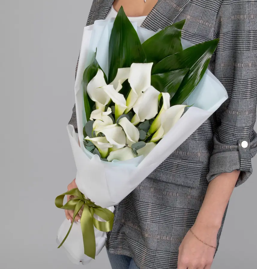 Букет из белых калл — купить по цене от 9350 руб. с доставкой в Нижнем Новгороде