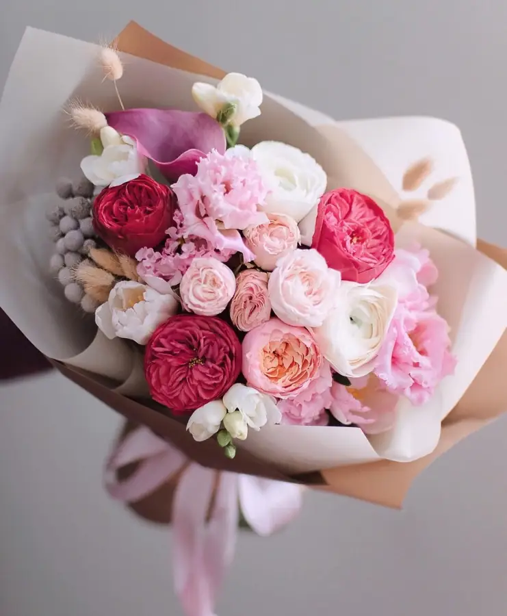Соберем в день доставки, только из свежих цветов и затем с улыбкой вручим получателю.