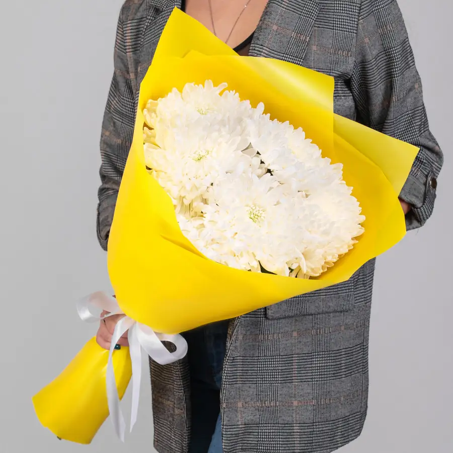 Хризантемы в желтой упаковке — купить по цене от 2540 руб. с доставкой в Нижнем Новгороде