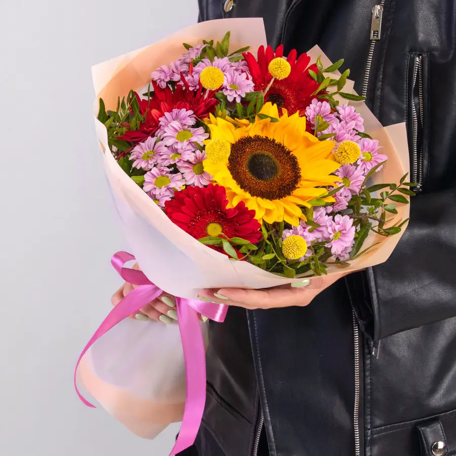 подсолнухи и кустовая хризантема — купить по цене от 3490 руб. с доставкой в Нижнем Новгороде