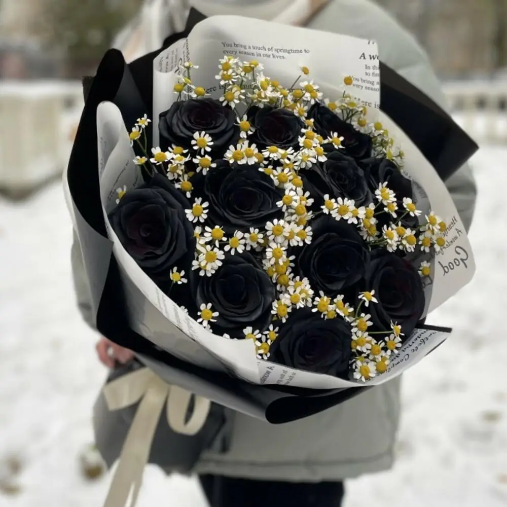 Букет из чёрных роз и матрикарии — купить по цене от 7700 руб. с доставкой в Нижнем Новгороде