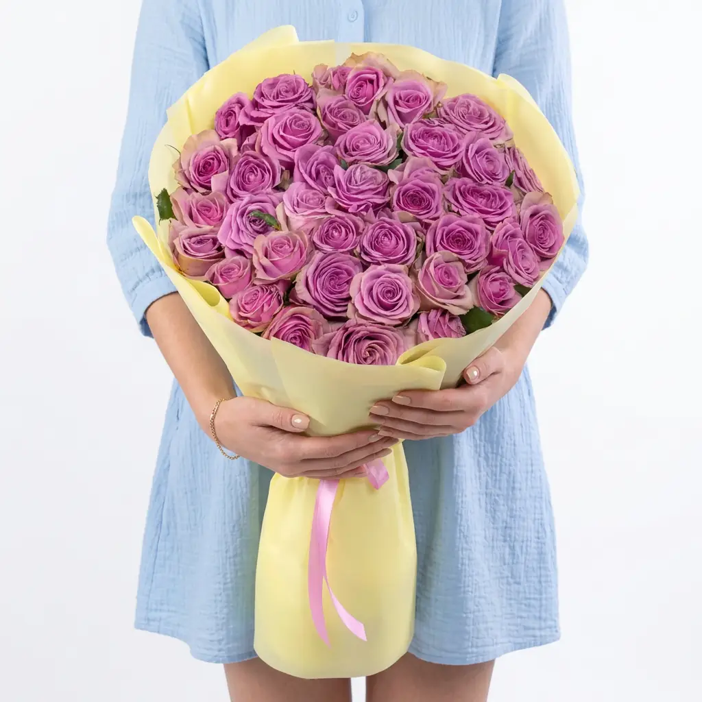 35 Сиреневых Роз в упаковке — купить по цене от 10350 руб. с доставкой в Нижнем Новгороде